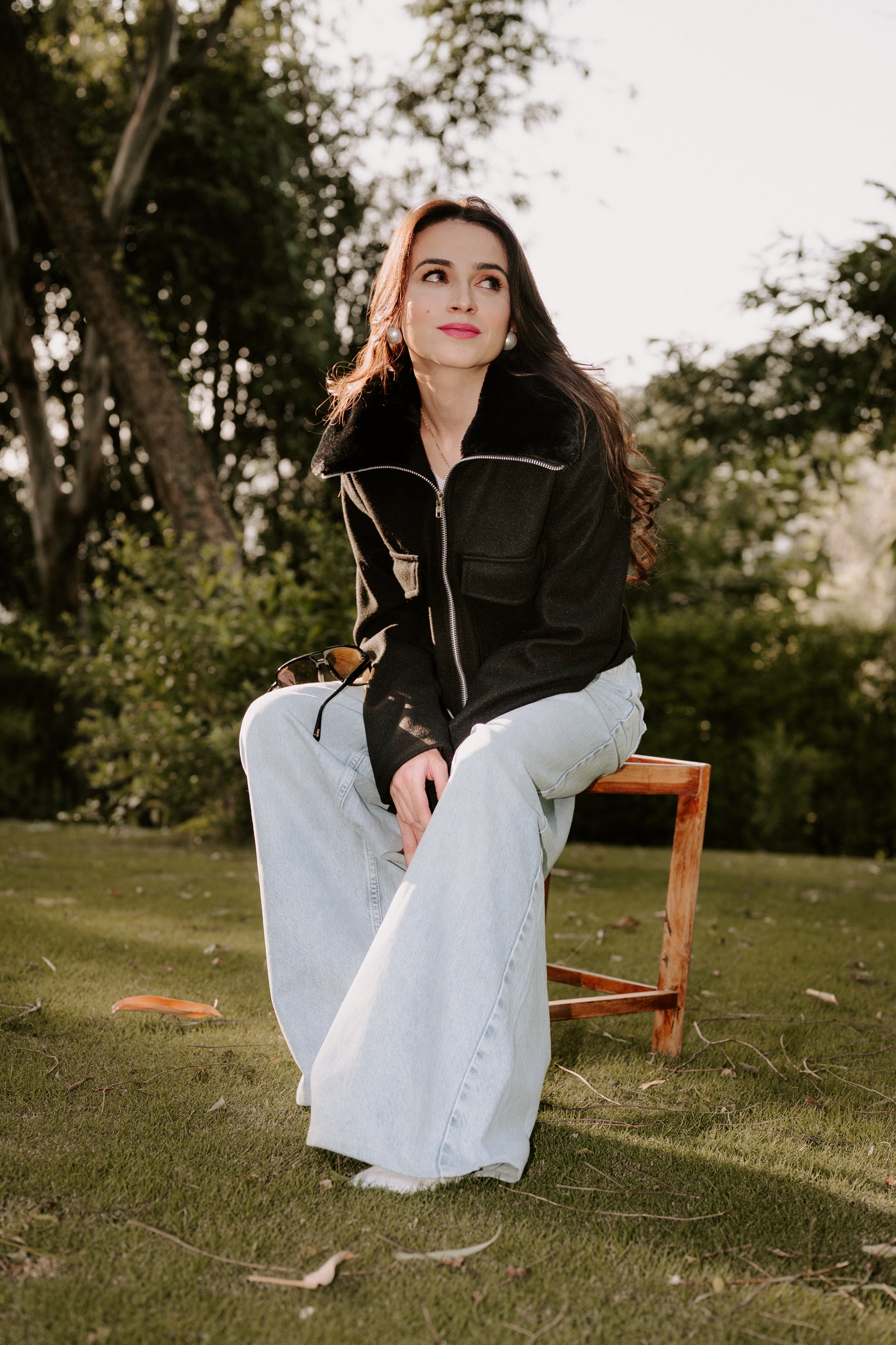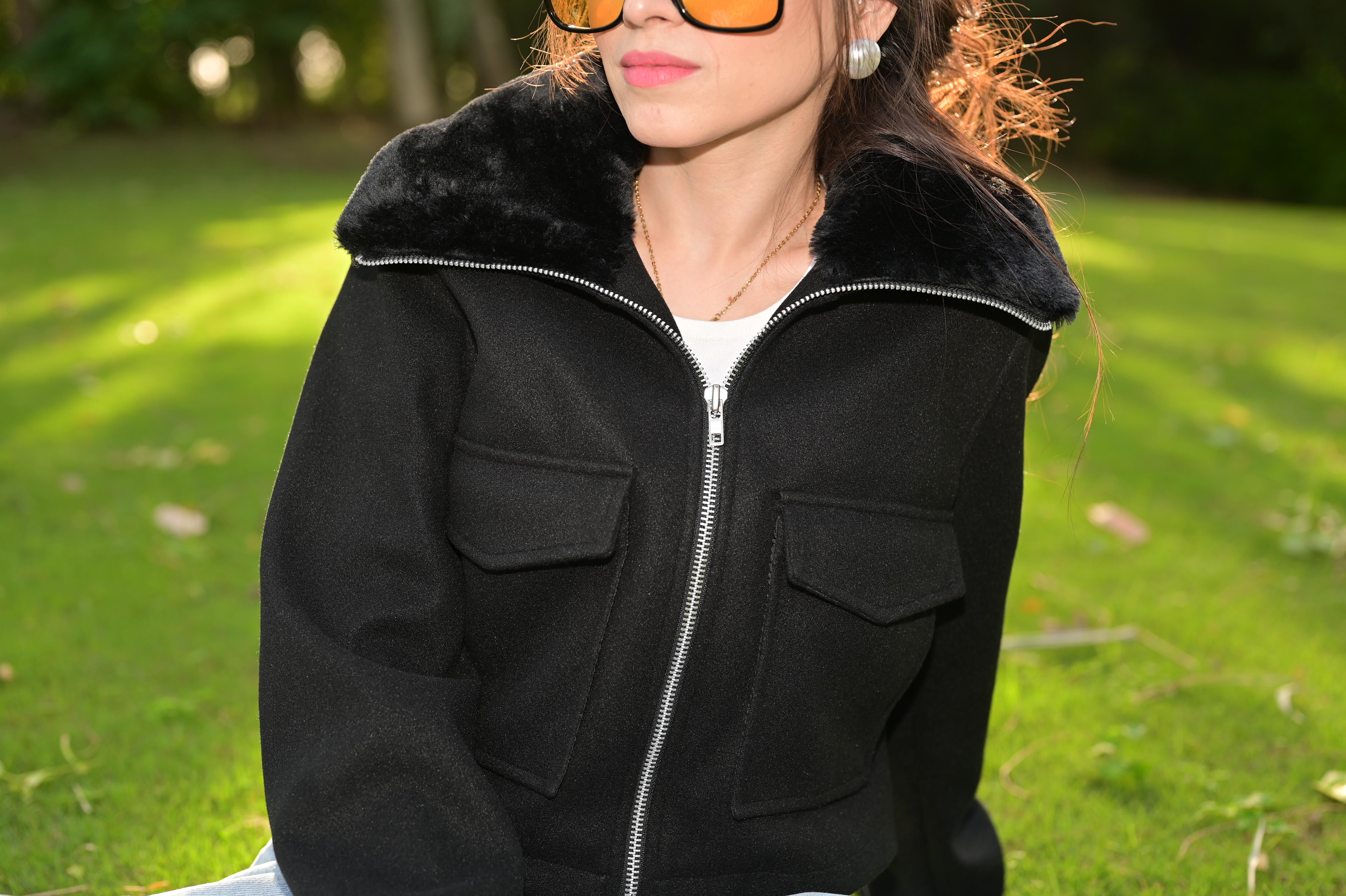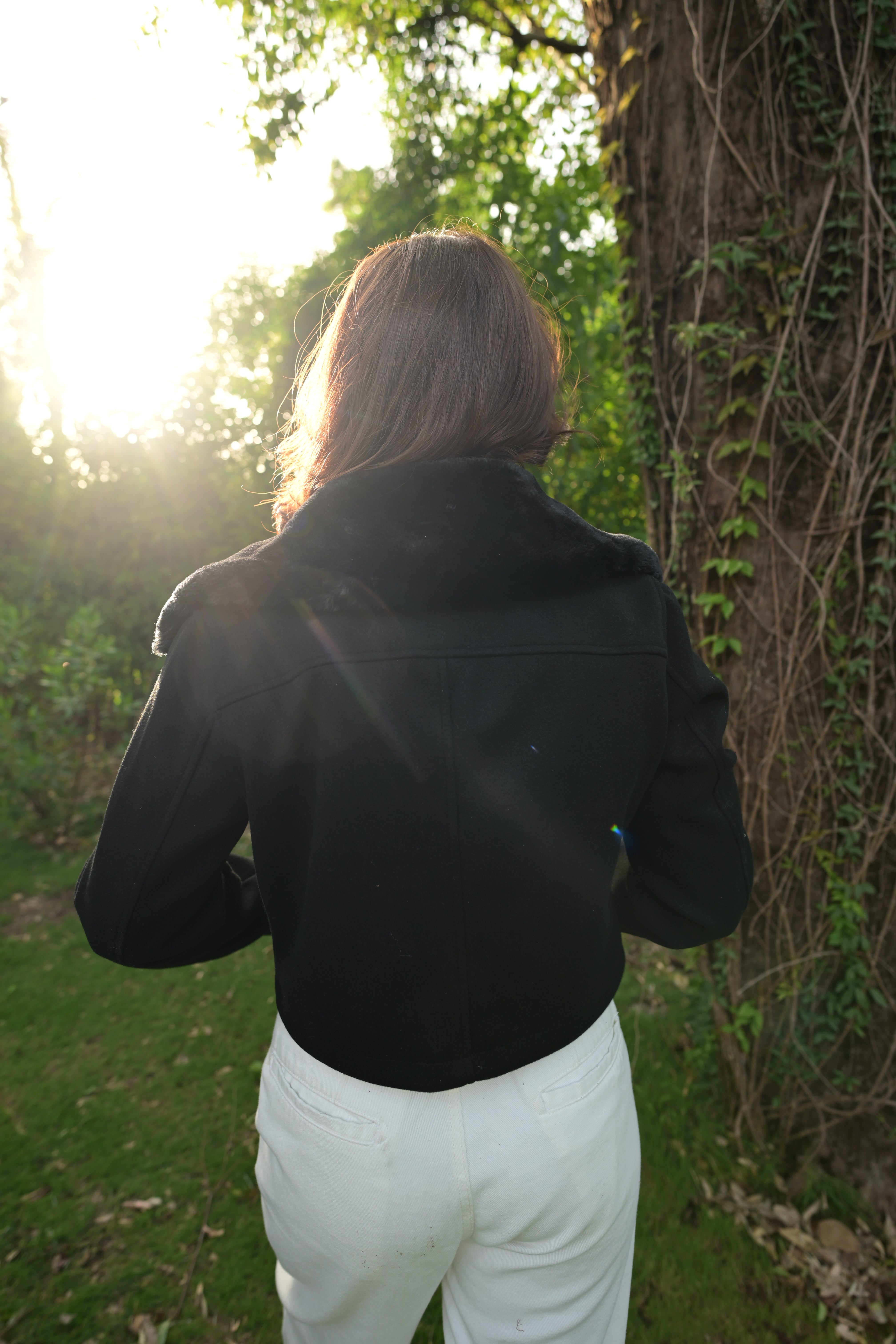 The standout feature — a luxurious plush faux fur spread collar — adds both warmth and elevated style, making this jacket perfect for cool days and chic winter looks. Equipped with YKK metal zippers for long-lasting durability and flat patch pockets for a sleek, polished finish, the Halo Jacket is both functional and fashionforward.